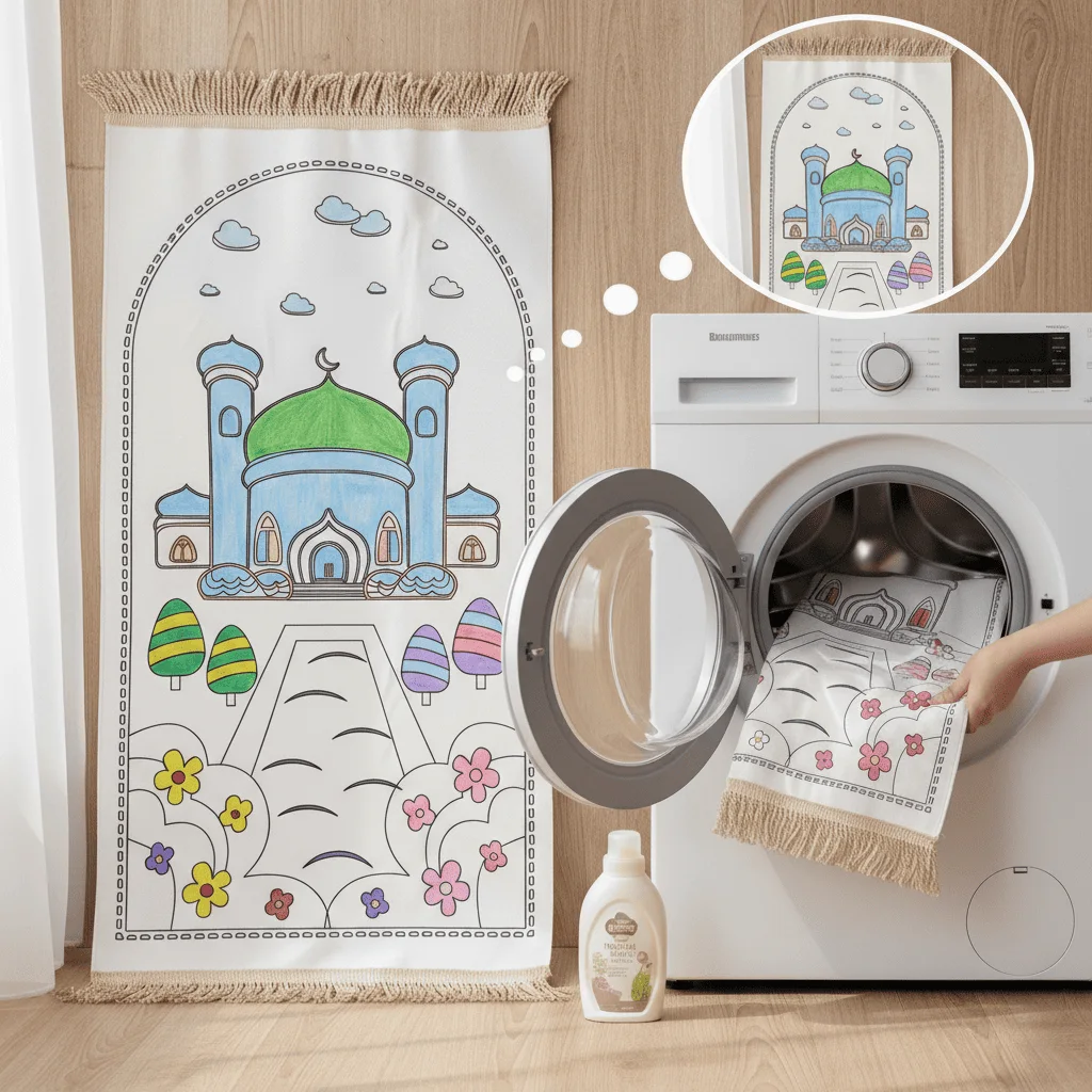 هذا سجادة الصلاة القابلة للتلوين تخليه يتعلم الصلاة بخطوات بسيطة وممتعة،